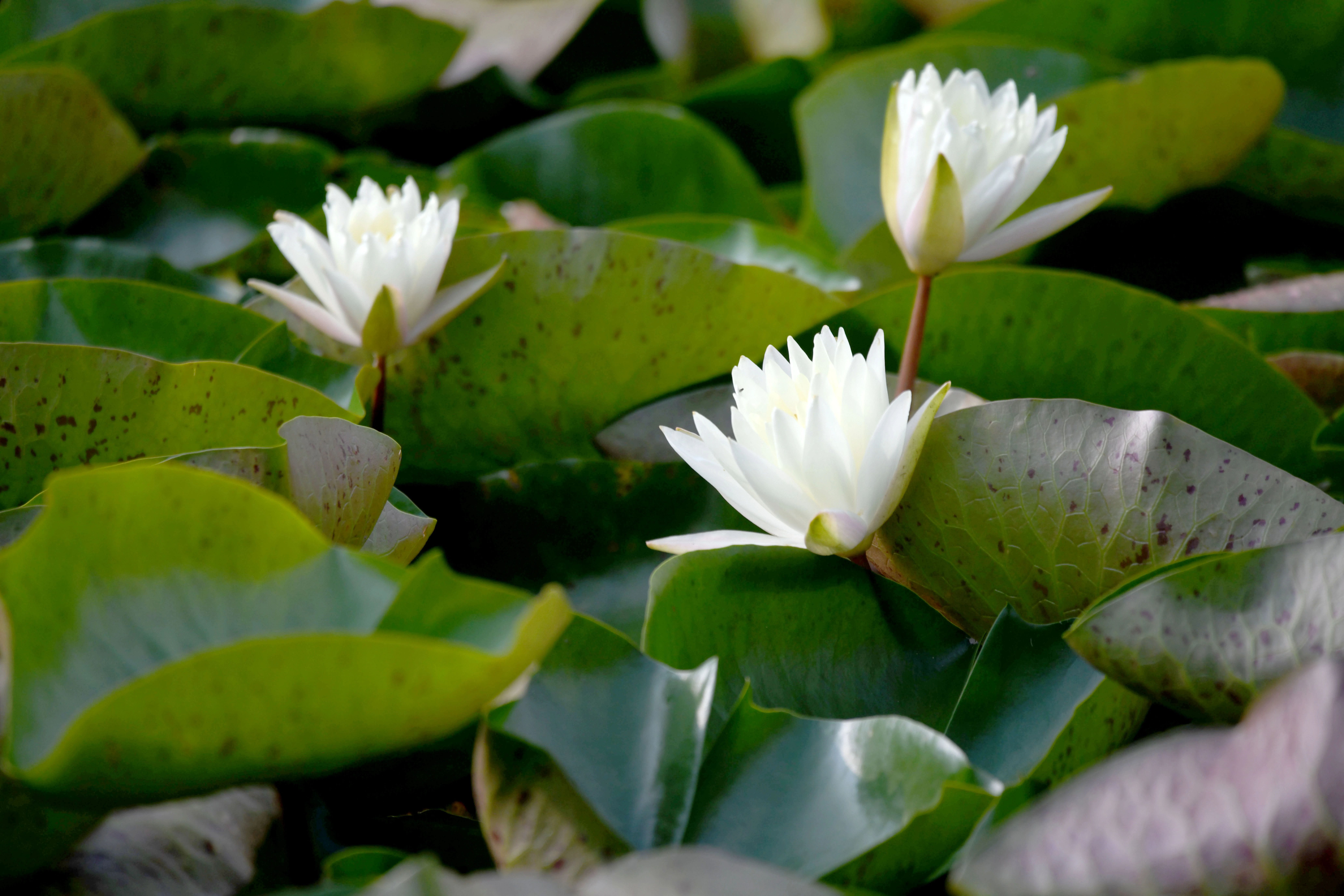 春光公园的睡莲池被大片草坪环绕,这里不仅是赏莲的佳地,更是亲子互动的好场所。白色的睡莲在池中竞相绽放,家长带着孩子在草坪上嬉戏时,抬头便能望见睡莲与蓝天白云构成的美好画面,尽显温馨与惬意。