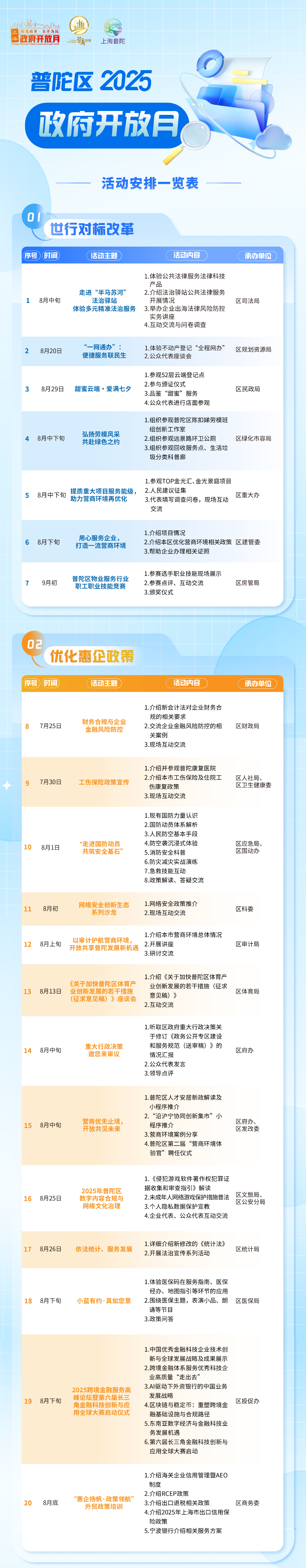 想知道一共有哪些开放活动?快来一起看看《普陀区政府开放月活动安排一览表》吧!