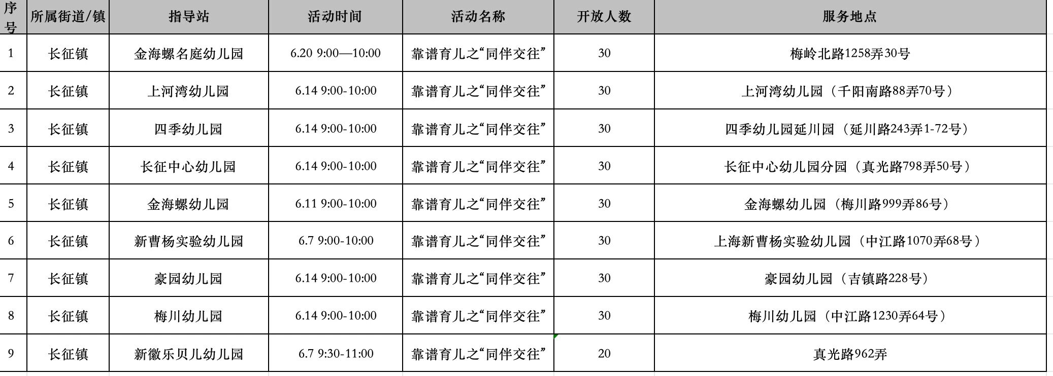 来源: 上海普陀9月,普陀区各早期教育指导站将以“科学育儿——自我认知”为主题,除了在全区10个街镇的公(民)办幼儿园内开展亲子游戏活动,还会利用周边社区资源走到园外组织开展特色亲子活动,为辖区内3岁以下婴幼儿家庭提供线下科学育儿指导免费公益服务。