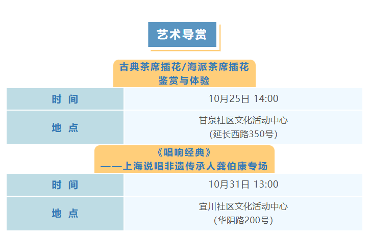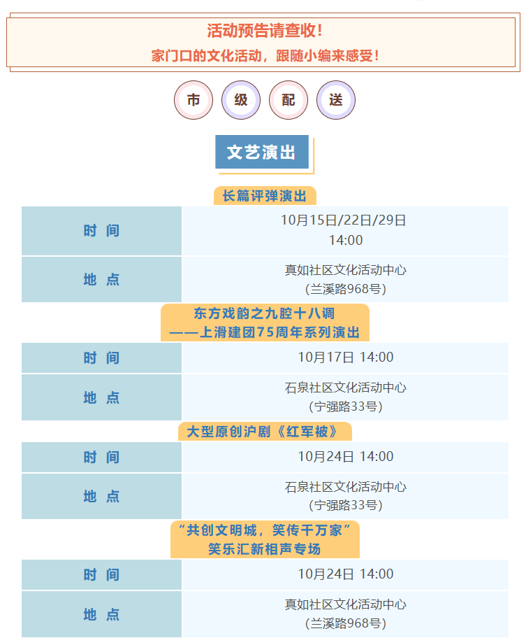 普陀区10月文化配送活动(市级配送)预告来啦!