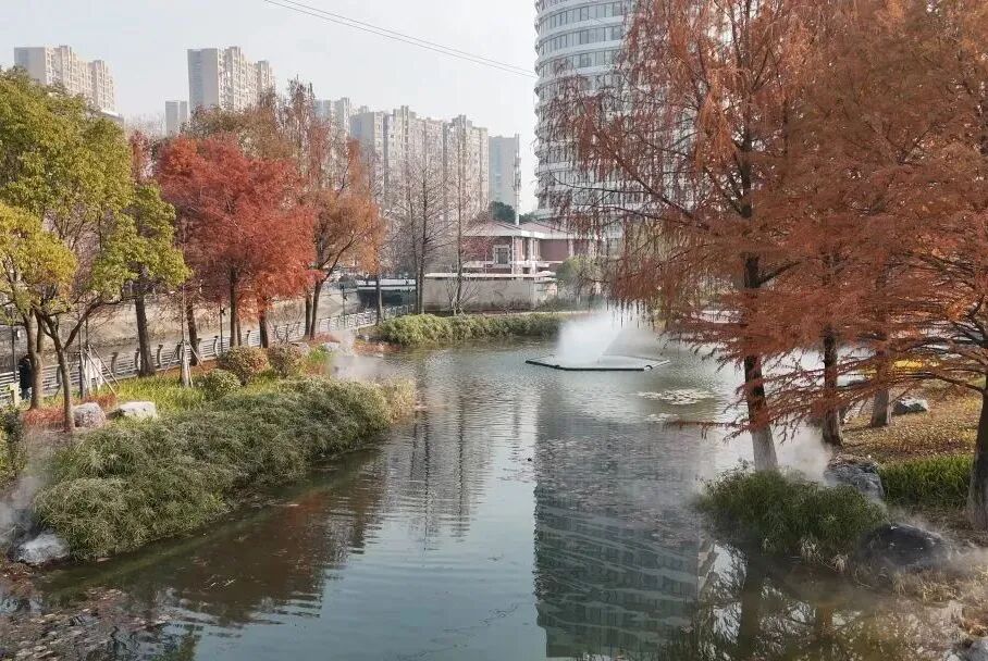 从图书馆阅读结束后,可步行前往附近的真如公园。虽暂未到院内腊梅盛放的季节,但园内高大乔木撑起连绵绿意,形成天然的巨型遮阳棚,仍是放空身心的好地方。最值得推荐的是从公园东南隅登上跨桃浦河的木质桥廊——在此可远眺真如寺古塔,古典塔影与城市天际线形成绝妙对比,堪称摄影爱好者的私藏机位。