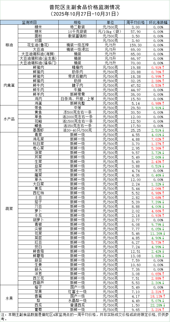 普陀区主副食品价格监测情况 (2025年11月3日)