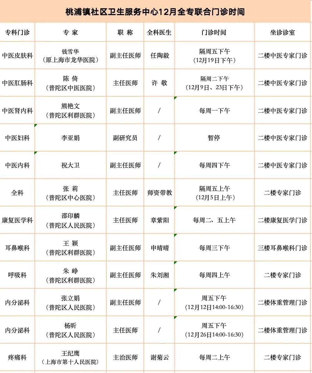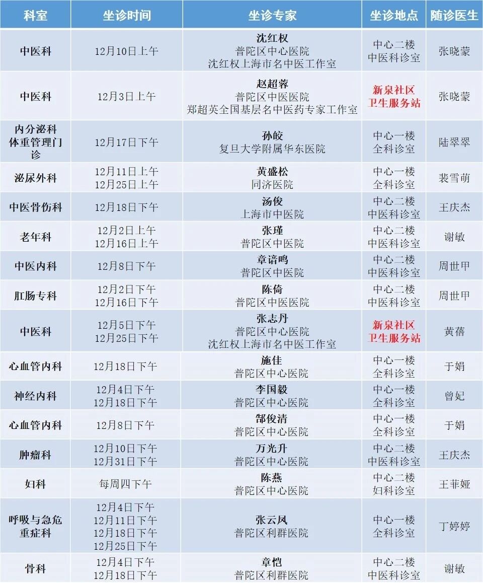 “家门口”就能看名医!普陀2025年12月专家门诊安排来啦 2025年12月05日