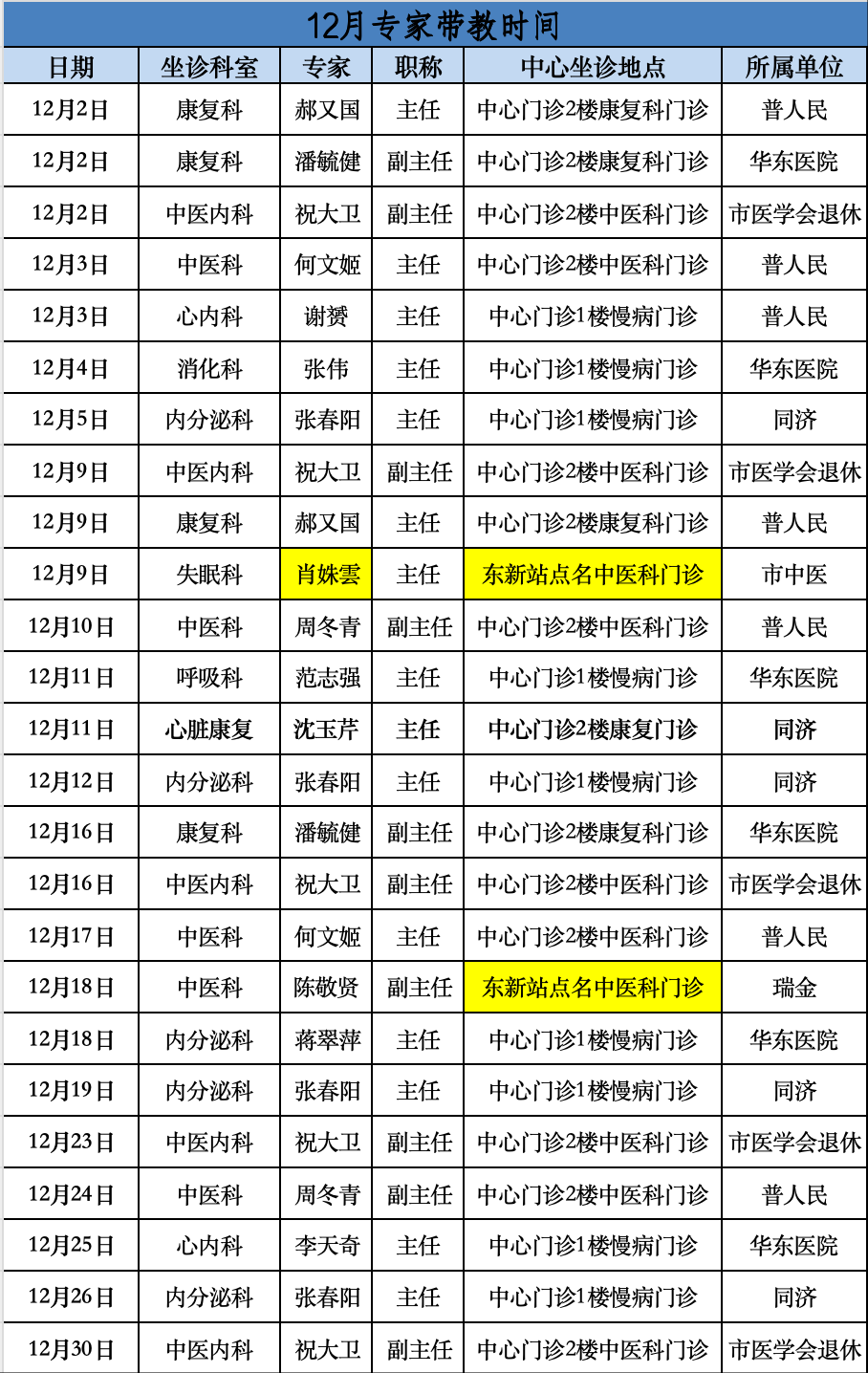 另:陈敬贤副主任每周一、周三、周五至东新站点吴政医生处预约;失眠门诊每周二下午东新站点1楼名中医工作室预约,避免跑空!