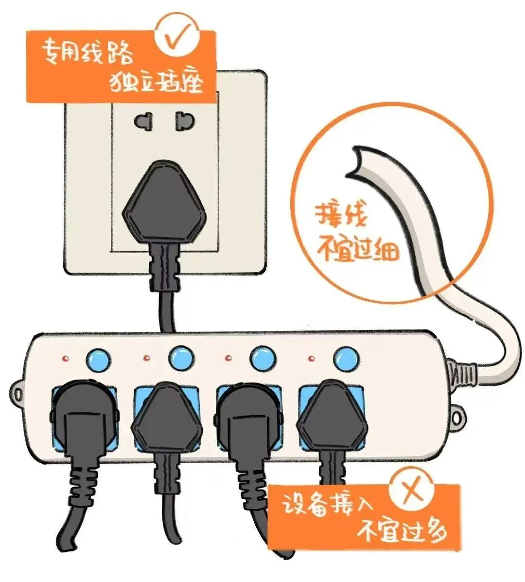 不少居民家中仍在使用超期服役、导线破损、插孔松动的老旧插线板,这类插线板因绝缘层老化、铜片氧化,极易出现短路、漏电现象,甚至引发触电、火灾事故。对此,相关部门在“走四百”行动中,为居民免费检测插线板安全状况,对不合格的老旧插线板统一更换为符合新国标(GB 2099.7—2024)的产品。