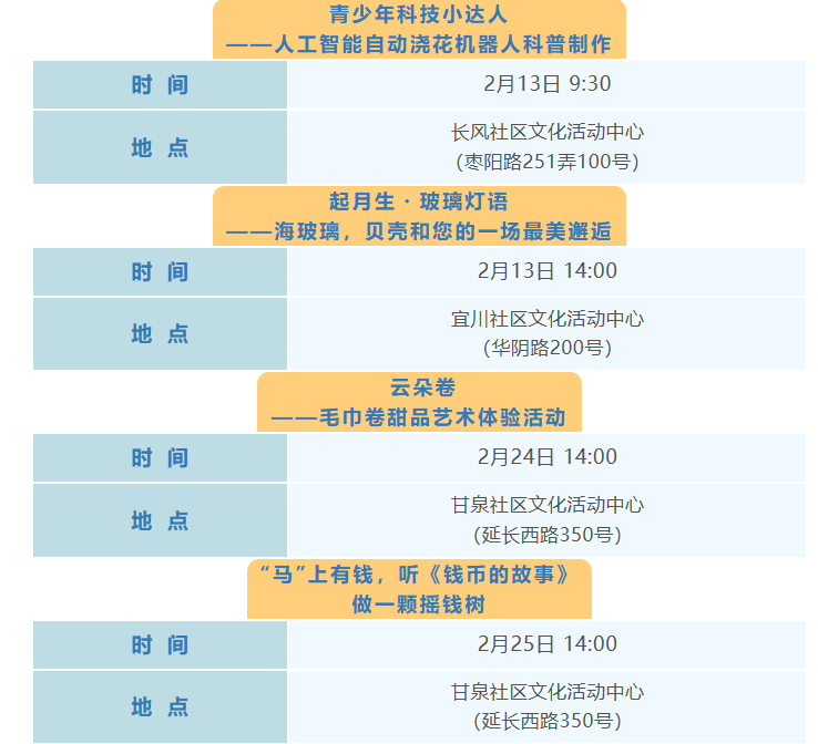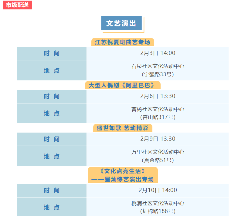 普陀区2月文化配送活动(市级配送)预告来啦!