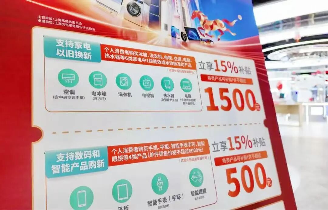 补贴力度方面,家电类补贴比例保持15%,补贴上限1500元,手机、平板等数码产品补贴上限500元。“不少顾客在获悉可以额外享受补贴后,购物意向明显提升。”店长黄敏介绍,百联中环京东家电店内60%商品均支持该政策,今天开始门店将对全员加强政策培训,加大宣传力度,让更多消费者知晓福利。黄敏预计,春节前会迎来购物小高峰,店铺已备足货源,接住这波消费热潮。