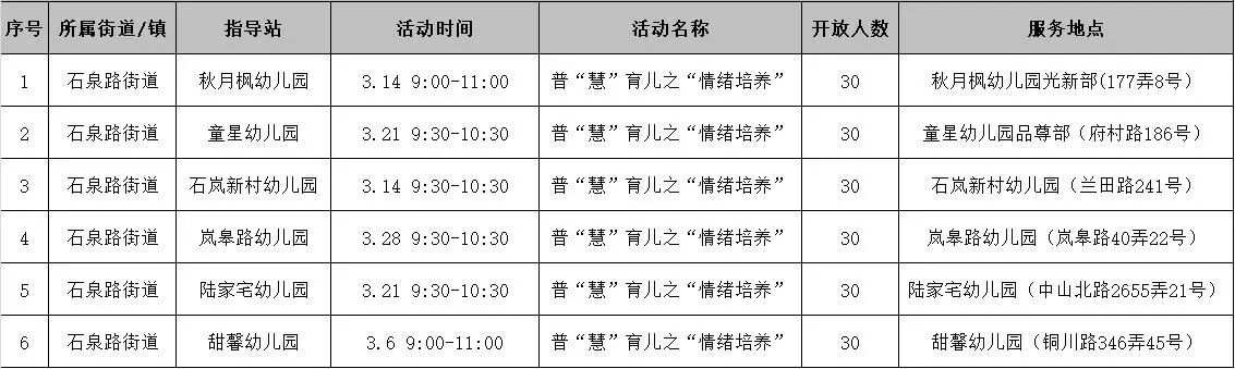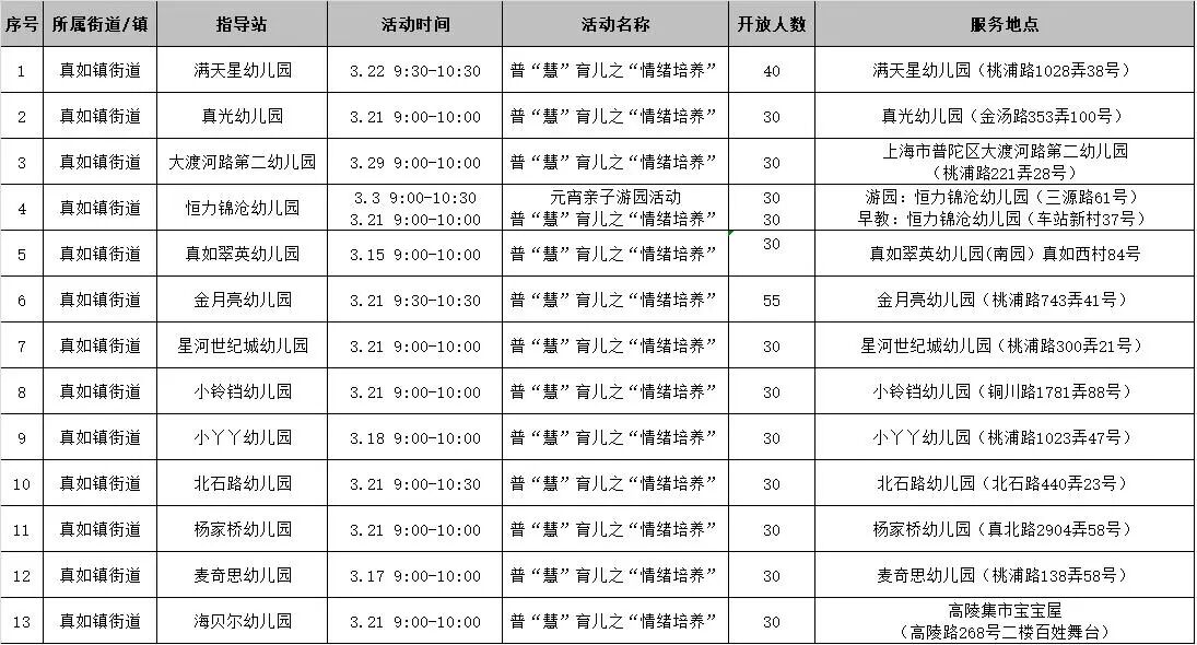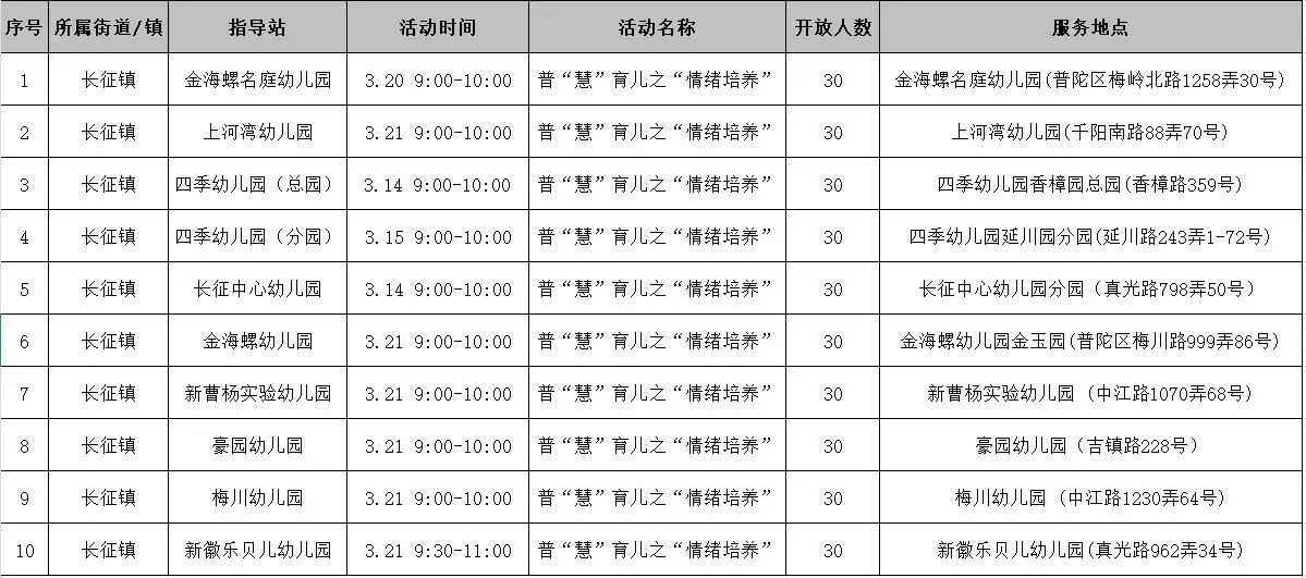 来源: 上海普陀3月,普陀区75个科学育儿指导站将以“科学育儿——情绪培养”为主题,组织开展各类亲子活动,为辖区内3岁以下婴幼儿家庭提供科学育儿指导免费公益服务。