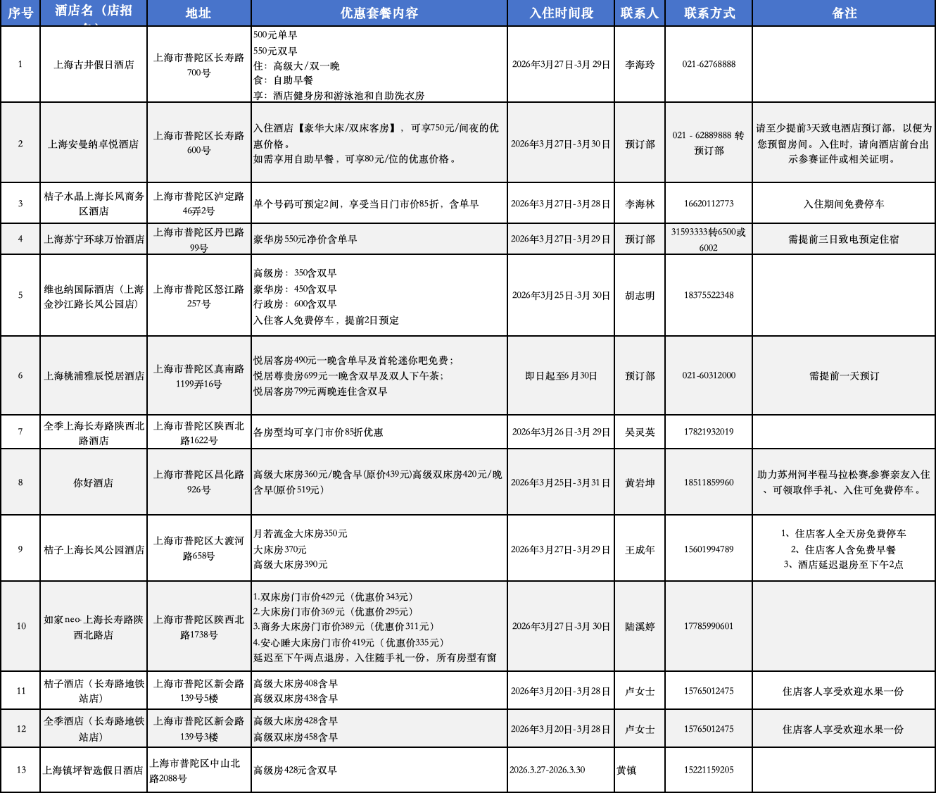 普陀13家酒店联动,跑者专属住宿福利发布! 2026年03月13日