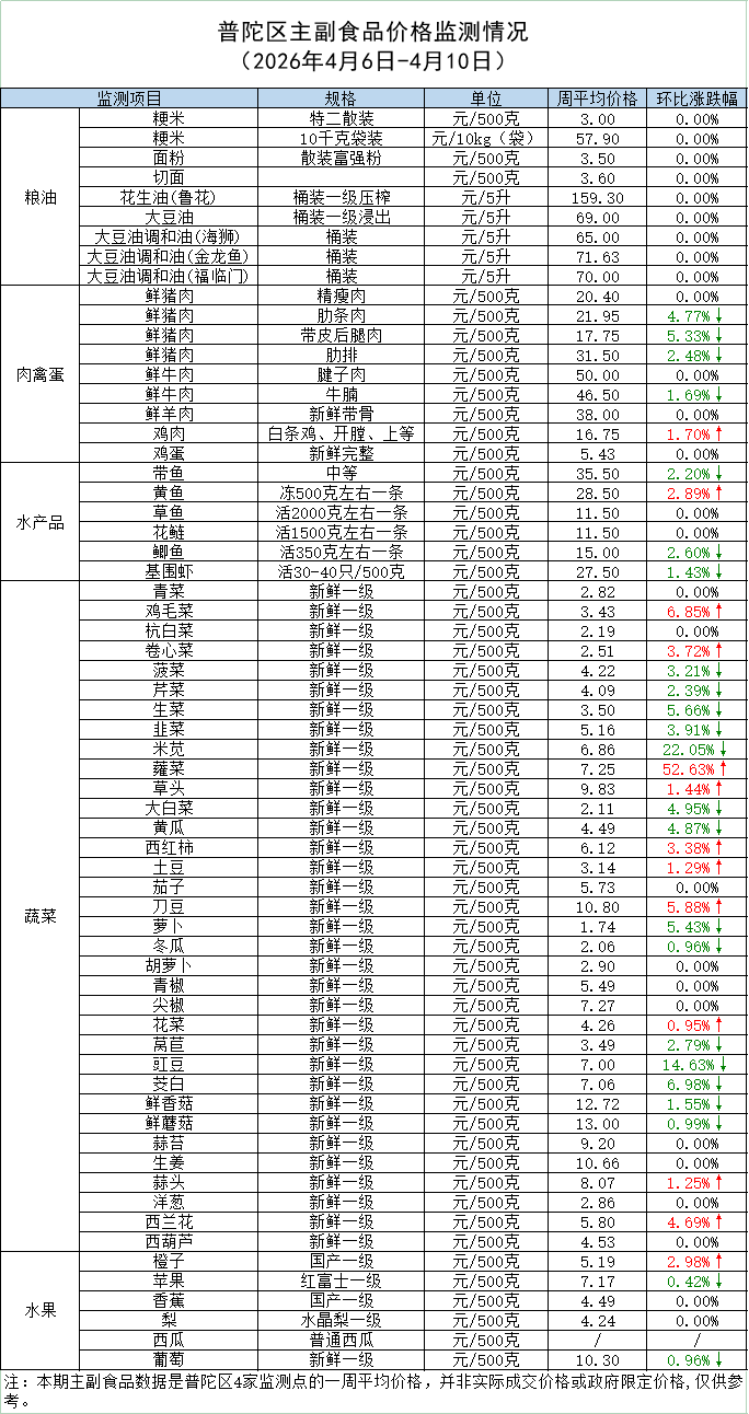 普陀区主副食品价格监测情况 (2026年4月13日)
