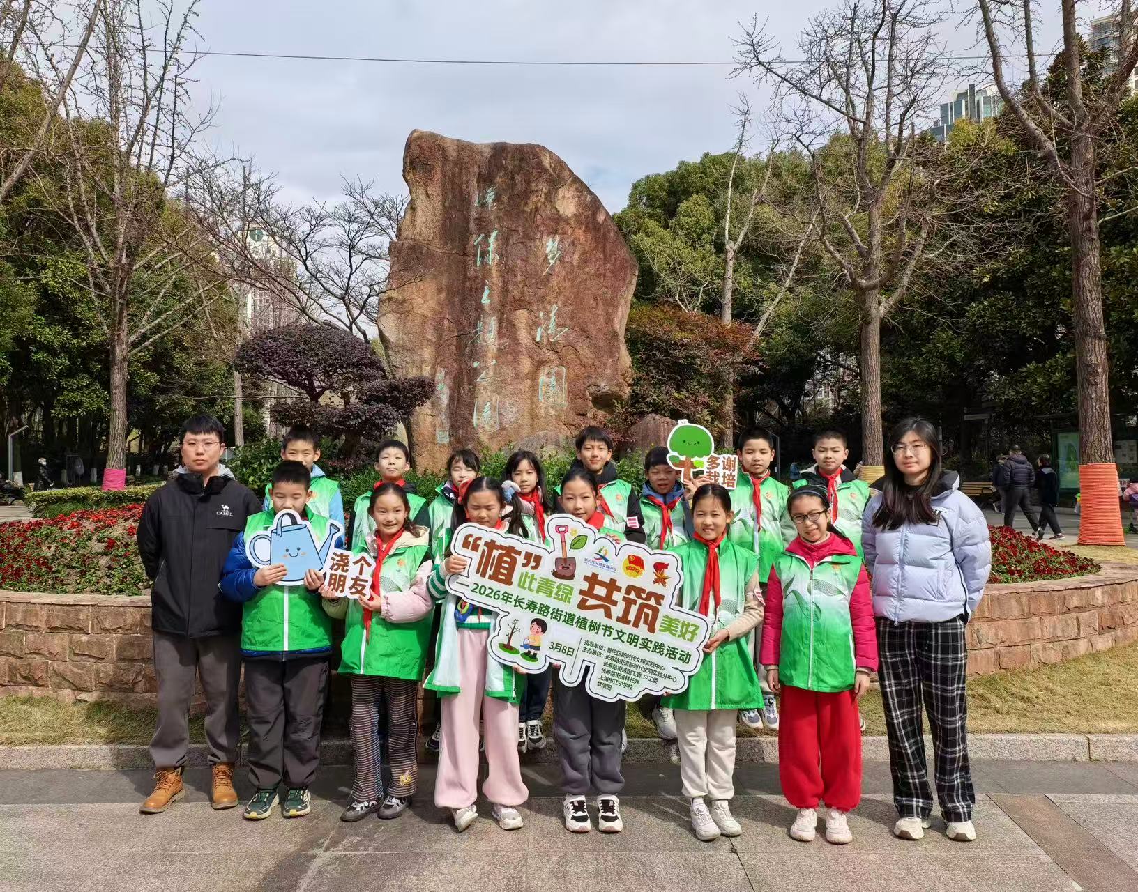 春风送暖,绿意盎然,又至一年植绿护绿的美好时节。3月8日,由普陀区新时代文明实践中心指导,长寿路街道新时代文明实践分中心、长寿路街道团工委、少工委、街道林长办、河长办联合上海市江宁学校、梦清园共同主办“植”此青绿 共筑美好——2026年长寿路街道植树节文明实践活动,15名少先队员化身绿色小卫士,在苏州河畔的梦清园里栽新苗、护旧树,以一栽一护的行动传承绿色使命,让环保理念在代代接力中生根发芽。