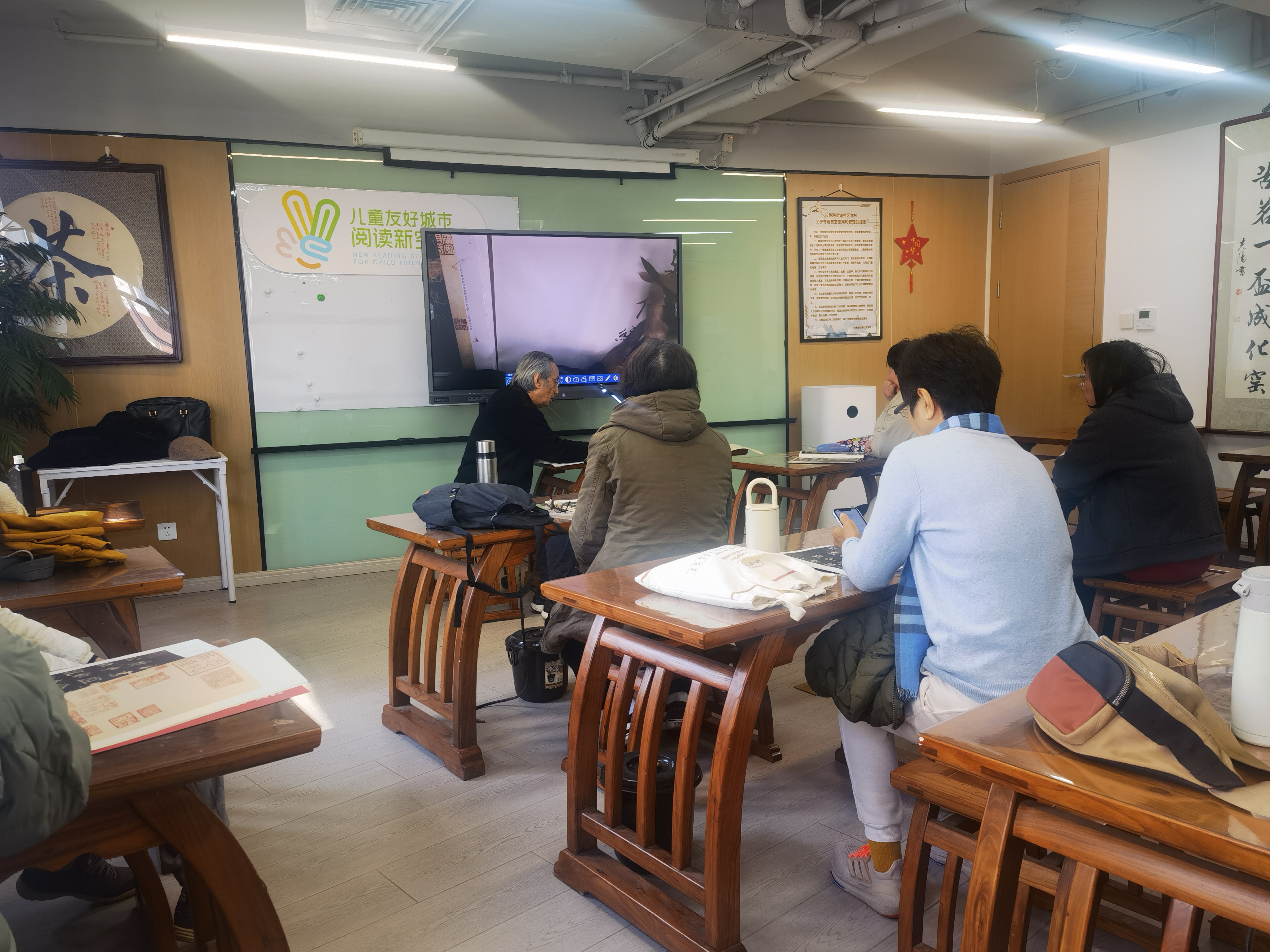 除了精彩的非遗课程,学校在日常管理上继续采用电子考勤系统,经过一学期的体验,老学员们不但自己熟练使用扫码签到,还能帮助指导新学员学会电子考勤。