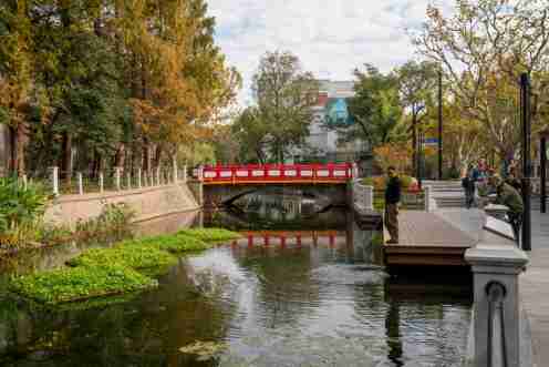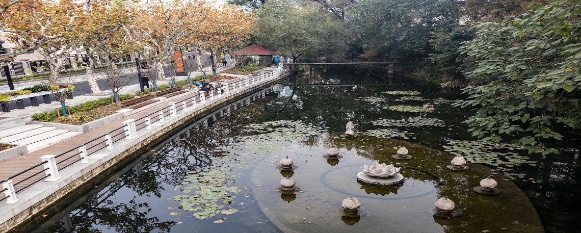 曹杨环浜串联了上海市优秀历史建筑曹杨一村、社区商业中心以及曹杨公园、兰溪青年公园等社区公园绿地,是可漫步、可交往、可品味的文化传承带、睦邻交往带、蓝绿生态带。