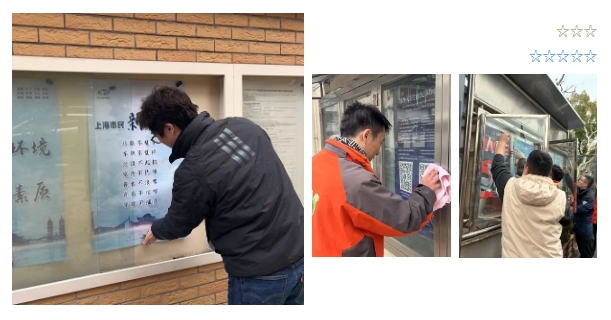 对宣传栏等设施进行擦拭和维护,铲除小黑广告,同时及时更换已过期、陈旧、破损的海报、宣传告知书等。