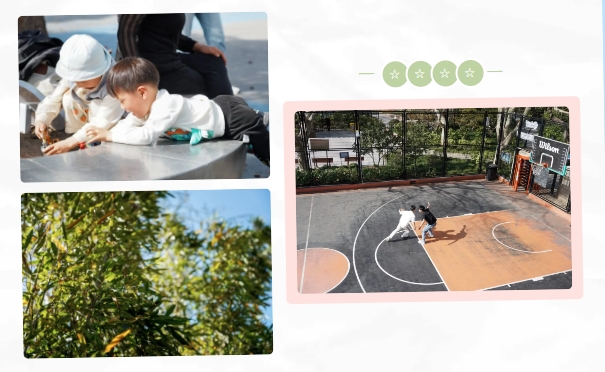 移步曹杨公园,篮球场上的荷尔蒙与梧桐树下的静谧形成奇妙和弦。