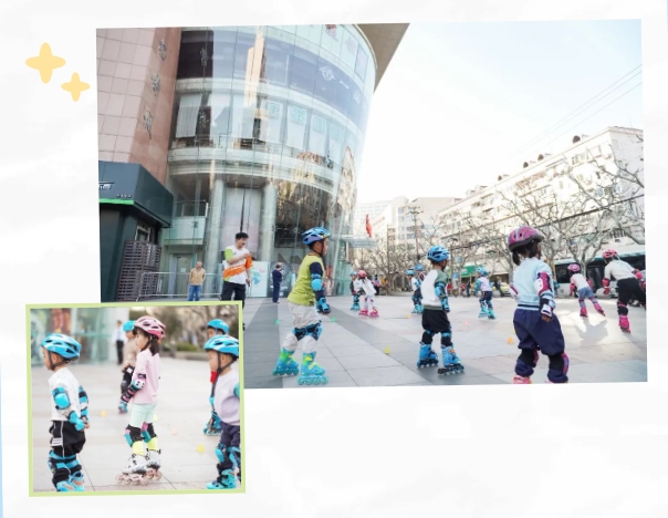 曹杨影城前,踩着轮滑的“小旋风”们穿梭如燕。