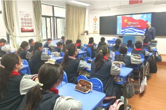 2025年04月25日 来源: 曹杨新村街道为进一步培养青少年爱国精神、树立强国志向,在海军节来临之际,曹杨新村街道双拥办联合普陀区军队离休退休干部休养所,走进上海市沙田学校,组织开展“传承蓝色精神 共筑海疆长城”海军节主题活动暨社区(少年)军校“思政成长营”系列活动。