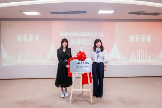现场,丁磊敏、胡霜铱为“中国农业银行曹杨新村银龄志愿服务队”揭牌。张璐瑶、李琳为“农行曹杨新村银龄志愿服务点”揭牌。