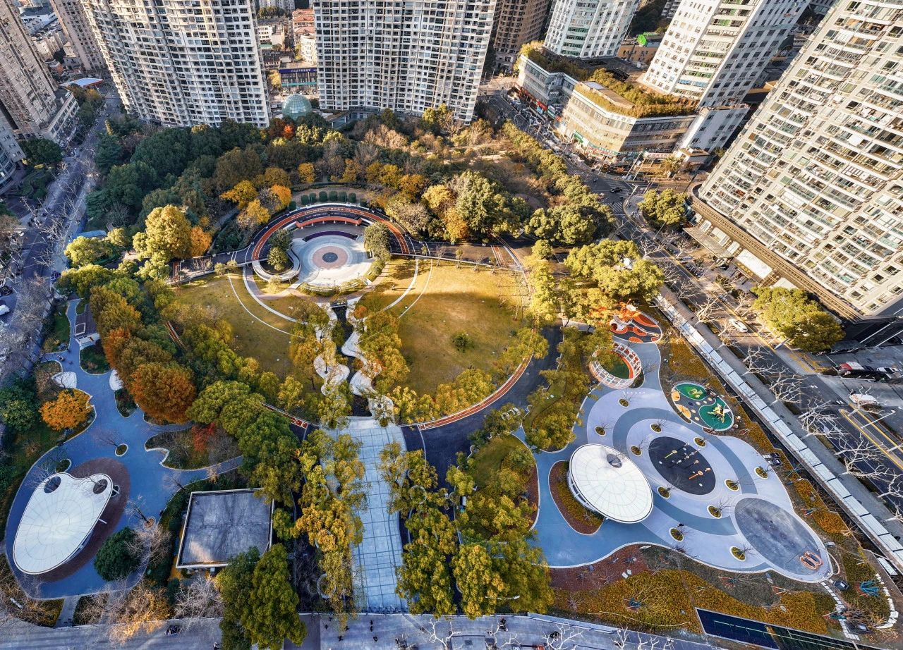 行至长寿公园,科技创新赋能四万平方米城市绿肺,智慧喷泉单车、泡泡森林等互动设施静候市民携子同乐。