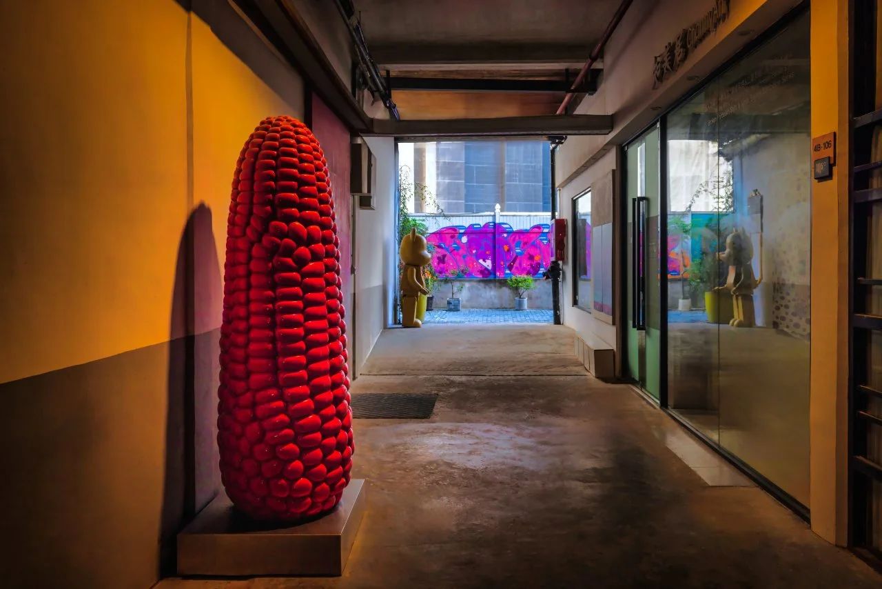 顺流而下,M50创意园斑驳的厂房外墙与当代艺术涂鸦相映成趣,艺术空间和创意店铺构筑起流动的创意长廊。