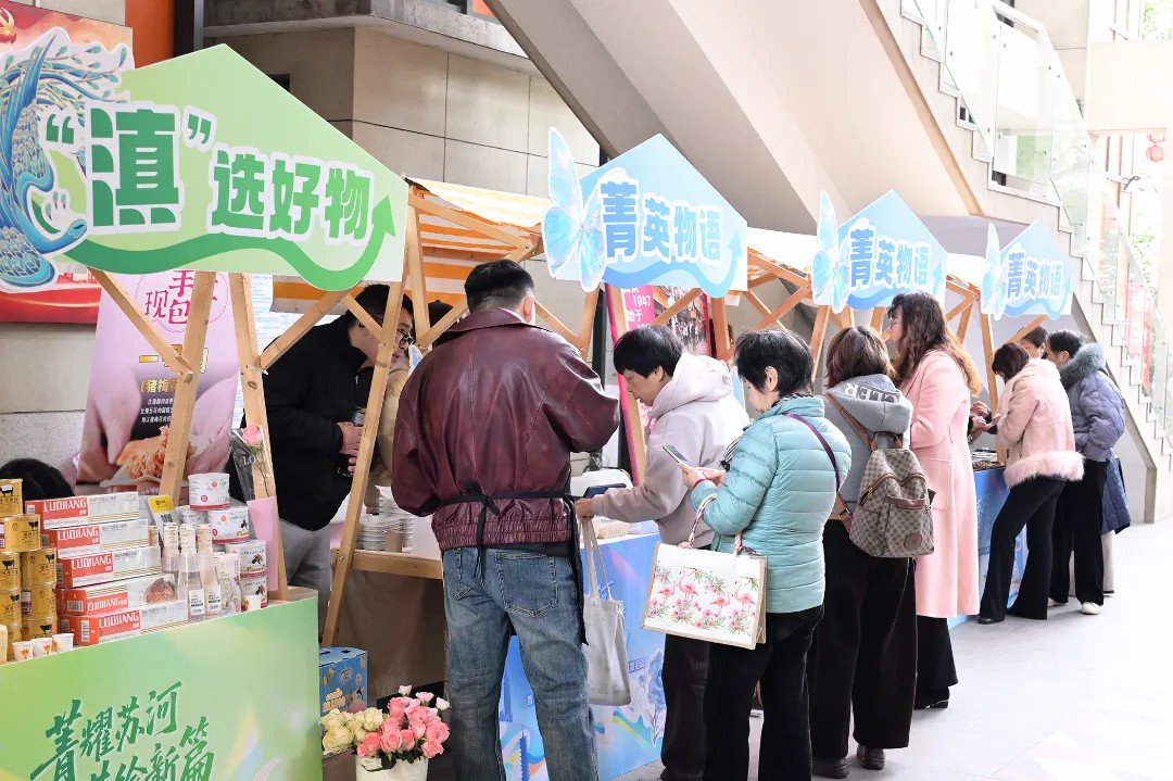 全天开放的“菁耀苏河”主题集市,设“沿沪宁好物”“滇选好物”“菁英物语”“普法互动专区”四大板块共16个特色摊位,一站式承包节日美好。来自苏州的太湖雪真丝、红馆旗袍尽显江南韵味,云南的乡村振兴农产品满载山野芬芳,福沁家纺、小杨生煎、蜜迩烘焙等普陀本土品牌唤醒温暖记忆。手作工坊里,市民沉浸式体验非遗技艺,感受传统之美;普法互动区,投沙包、转盘答题等趣味游戏,让妇女权益相关法律知识在欢声笑语中入脑入心。市民们淘好物、品美食、做手工、学法律,在浓浓烟火气中共享节日温情。