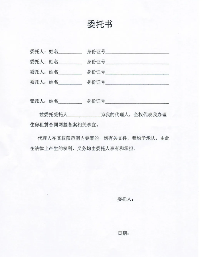 2、委托书(申请人自备,确保填写的信息准确无误。注意!!!必须由委托人亲自签名,虚假签字产生的后果自行承担。)