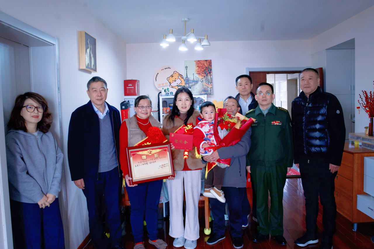 区、镇两级领导为现役文职干部陈莉及其家属送上喜报及慰问品。汪顺芝对其家属在背后的支持及付出表示感谢。陈莉先后在海军军医大学第一附属医院(上海长海医院)及海军军医大学第三附属医院(上海东方肝胆外科医院)工作共20年,2024年度荣获服务保障个人“三等功”、“四有优秀”文职人员。