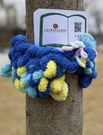 半马苏河沿线部分大树披上了由废旧毛线编织的"春装"。曹杨附校的学生们巧手翻飞间,原本孤零零的树干化作"生态艺术展",将定制版"树界身份证"挂上枝头。学生们还在老师的指导下,将爱河护河倡议书以二维码的方式向往来路人进行宣传,构成一幅爱河护河的温暖图景。