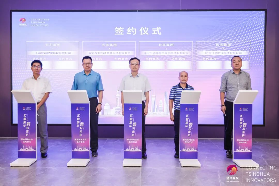 会上,清华校友企业代表安必视(北京)智能科技有限公司、佛山市清柳再生医学科技有限公司、北京飞思时代科技有限公司、上海复运智能科技有限公司等与普陀区长风集团现场签署了落地意向书。