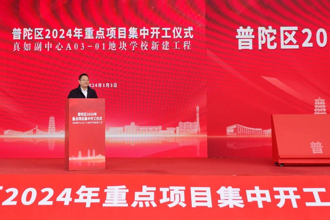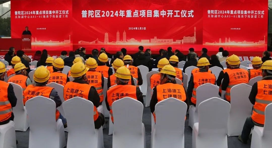 “我宣布,普陀区2024年重点项目集中开工!”在主会场真如副中心A03-01地块学校新建工程项目现场,姜冬冬与6个分会场进行了线上直播互动,并宣布重点项目集中开工。随着现场机器的轰鸣声,7个会场同步开工(启动),为2024年奏响奋进新乐章。