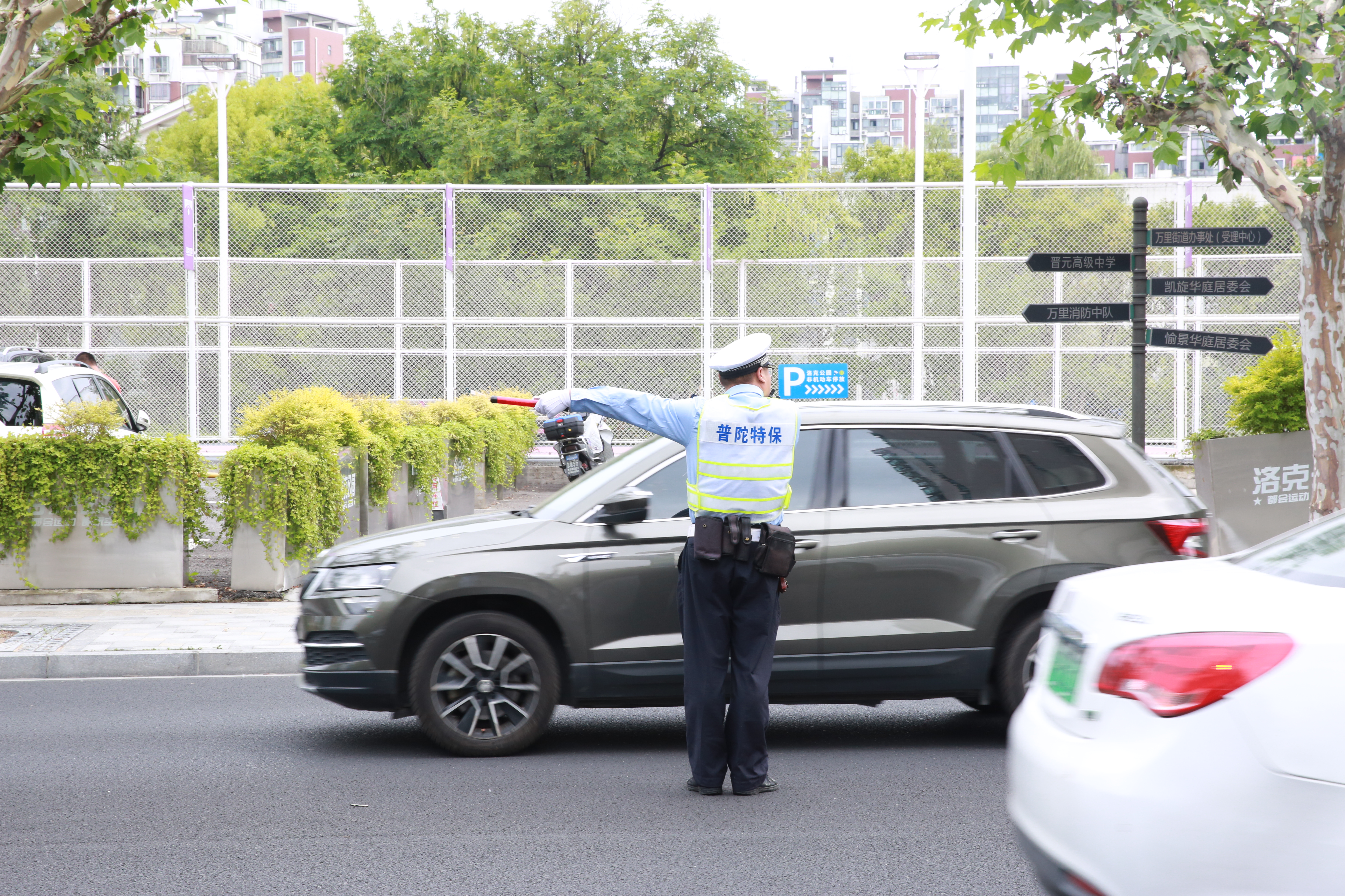 在普陀区的各大考点外,民警已将反光锥、禁止鸣号标识牌妥善放置,以隔开机动车与非机动车道,同时也保障了考点周边安静的考试环境。各大路口皆配备了交警支队民警、辅警,根据先期预案,指挥着来往的车辆,保障送考道路通行顺畅。