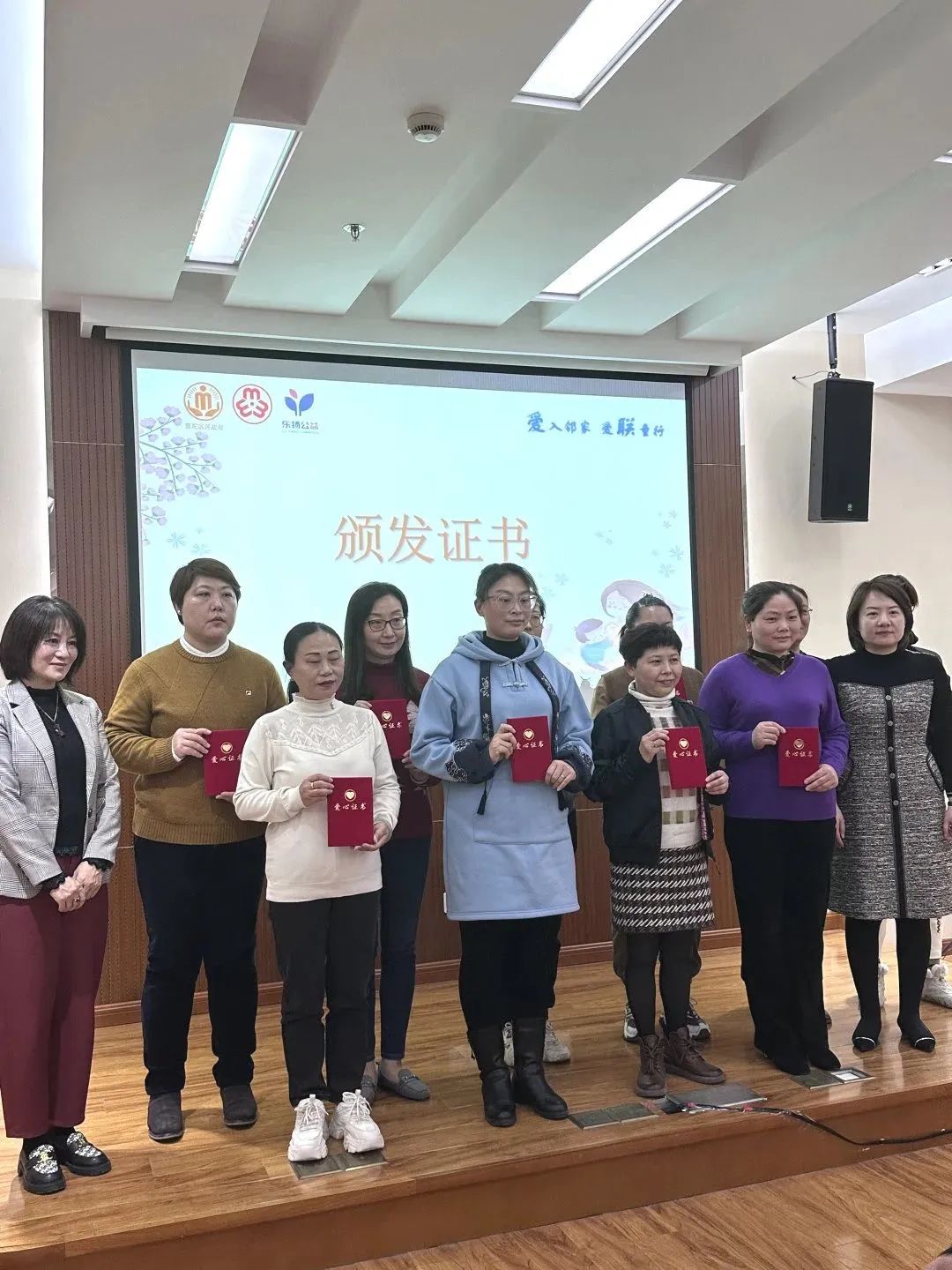 区民政局和区妇联为“邻家妈妈”志愿者代表颁证,上海市妇联家儿部为各街镇“邻家妈妈”志愿服务队授旗。