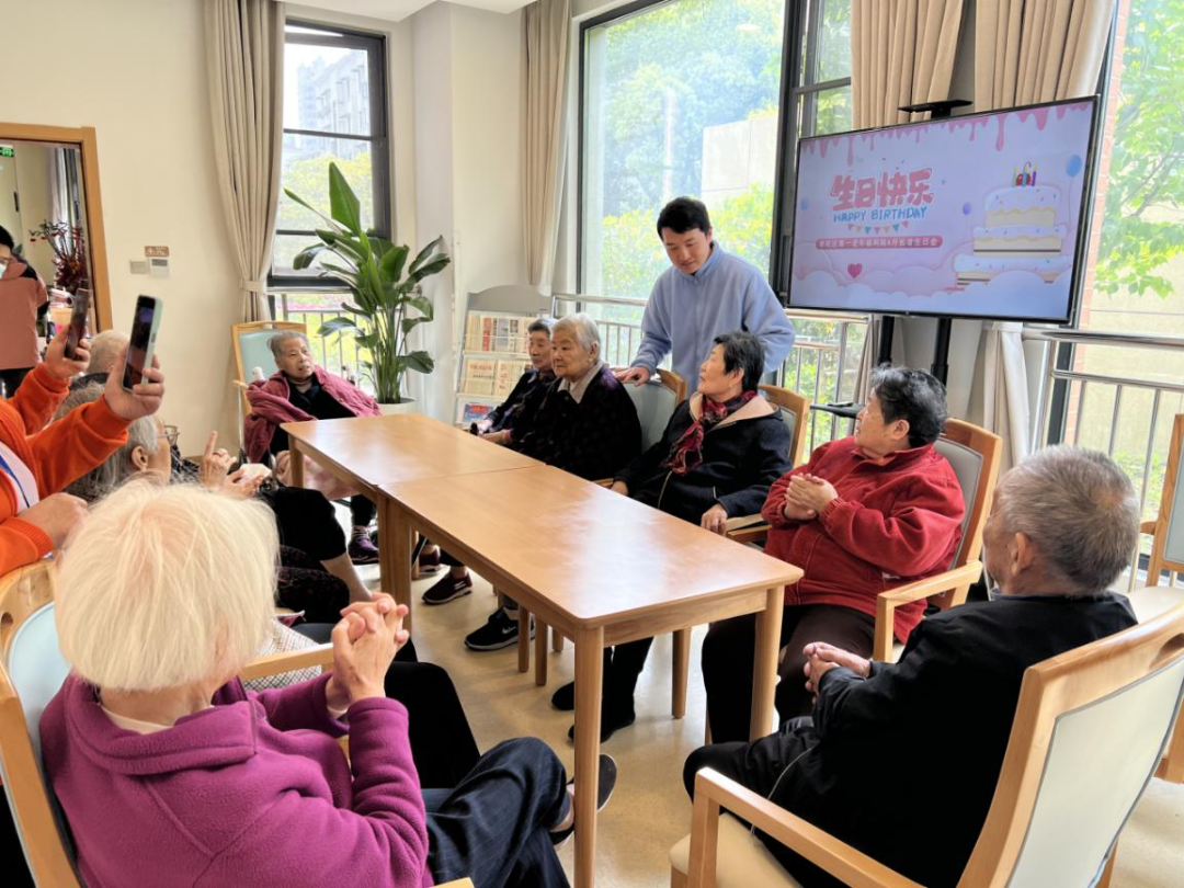 上海普陀区第一老年福利院为老人们举办了长者生日会,大家一起过生日、吃蛋糕,更多了几分温馨与欢乐。长者生日会是尊老敬老爱老的传承,不仅丰富了长者们的日常生活,让长者感受到了养老院大家庭的温暖。