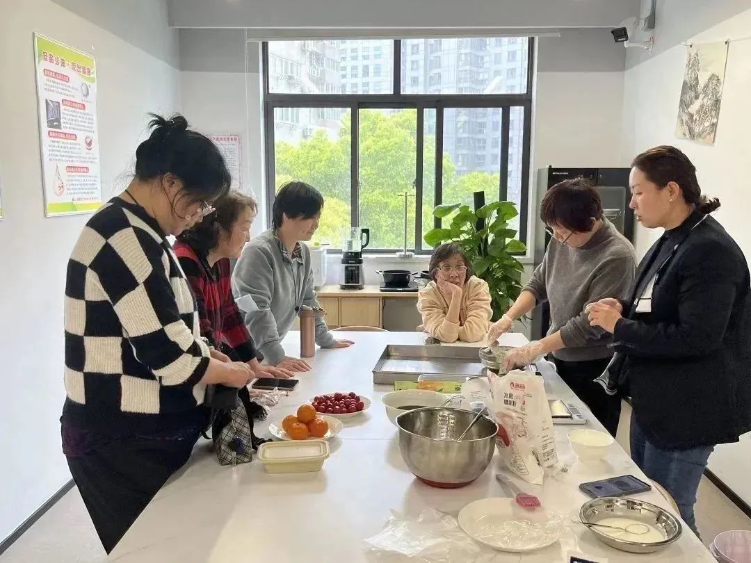 作为长寿地区第一个使用“爱护网”系统进行支付的社区食堂,胶州片区社区食堂为社区居民提供堂食、外带和送餐服务。除了丰富的菜品之外,食堂利用中午餐后休息的时间为周边白领开展美食课堂。“花式馒头”“花式糕点”等手工美食,“节气饮品”、“咖啡果汁”等特色饮品,搭配起来成了一份完美的下午茶点,既丰富白领午间生活,也充分利用了食堂空间。