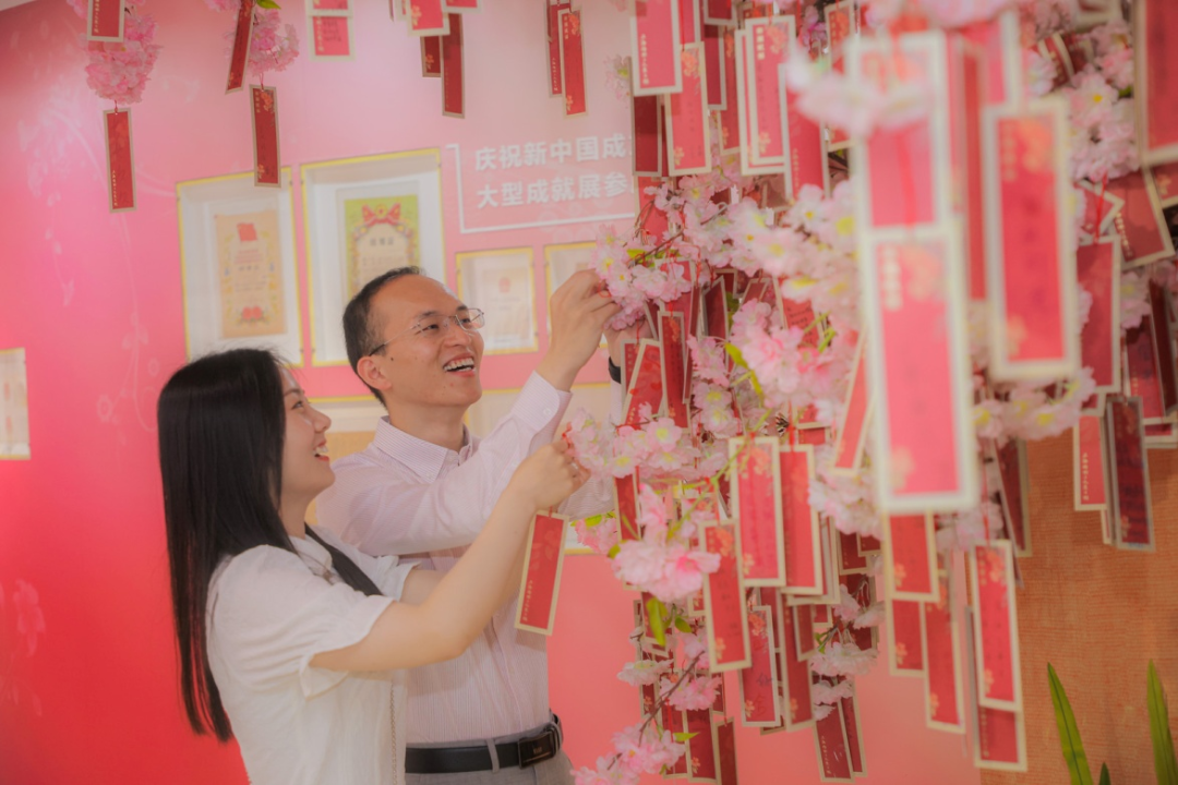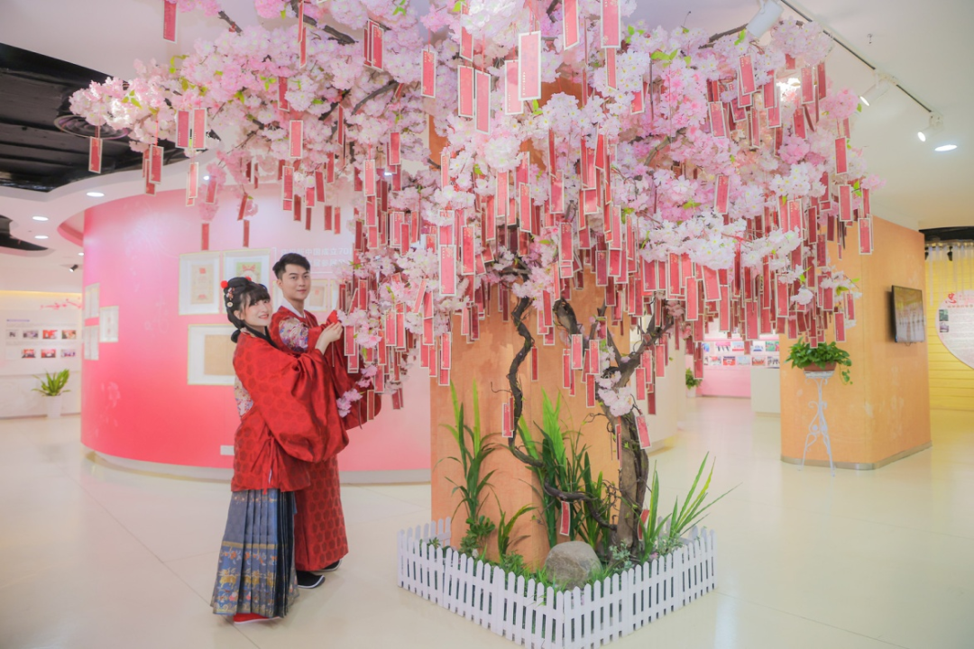 上海婚姻文化展示馆也在当天迎来许多新家庭,不少新人表示,参观完展示馆后增强了自身的家庭意识,强化了家庭责任的担当,一同许下了培育优良家训家风的美好愿景,积极传承优秀传统文化。