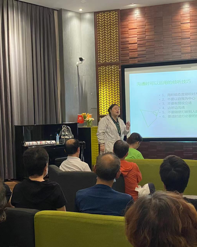 活动中,心理学专家详细介绍有效沟通的重要性和实用技巧。他鼓励大家耐心倾听,用心理解对方的需求和情感。同时尊重他人的观点和感受,避免急躁和打断,建立起信任的纽带。此外,专家还列举多个日常人际交往的场景,让老年人对沟通的重要性有了深层次的理解。讲座结束时,专家还引用卡耐基的名言指出了沟通的重要性——沟通的最高境界是,说要说到别人很愿意听,听要听到别人很愿意说。