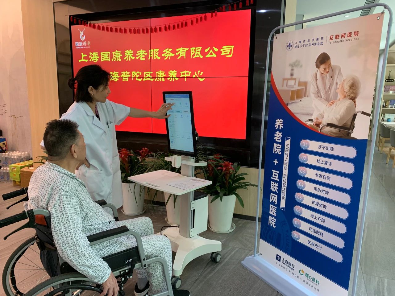 今年7月,依托上海市同济医院的优质医疗资源、上海银行普陀支行的一体化金融服务资源,区民政局在上海甘泉宏利敬老院、上海云集新曹杨颐养院和上海普陀区康养中心等三家养老机构,继续推行“养老院+互联网医院”运营服务模式。“互联网+医疗+金融”的强强联手,给养老机构的住养老人们的生活带来了哪些新变化?