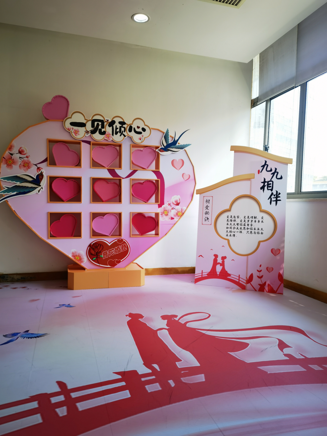 9月9日,承载着“天长地久”的美好寓意,普陀婚登为前来领证的新人准备了“一见倾心,久久(九九)相伴”的主题颁证活动。