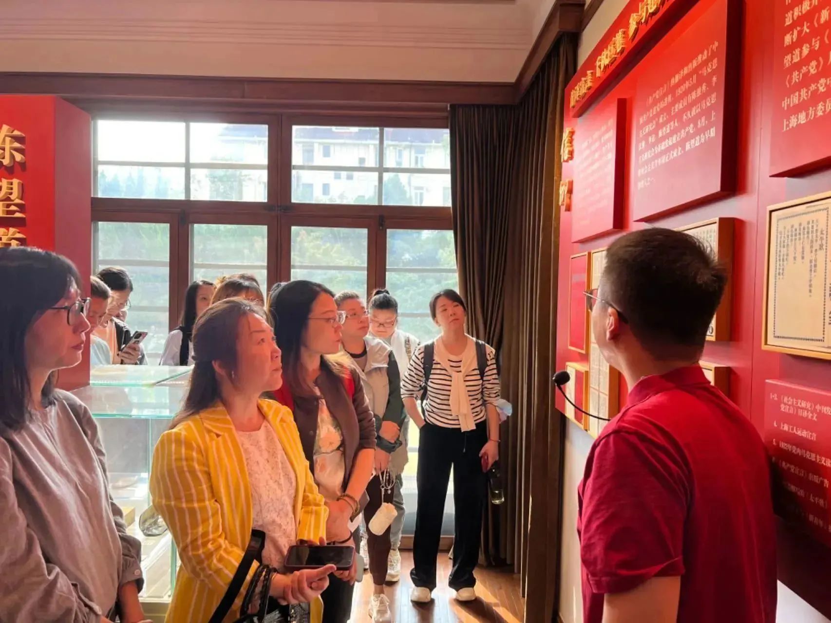 一行人走在复旦大学的校园里,感受百年名校的文化气息。在这里,优秀居村主任们参观了陈望道旧居,重新认识了《共产党宣言》作为“信仰之源”在革命先驱探索救国道路中的重大作用,了解了毛主席塑像背后的历史故事,参观了校园里的一组组小景观。大家在苏步青的提诗前吟诵留念。
