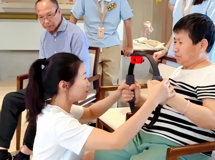 “金叔叔,该您上场啦!”每周举办的“数智运动会”总是充满欢声笑语。放下助行器的金叔叔熟练接过健身环,在社工协助下完成上肢训练。围观的老伙伴们自发为他加油,活动大厅洋溢着温暖的鼓励声。