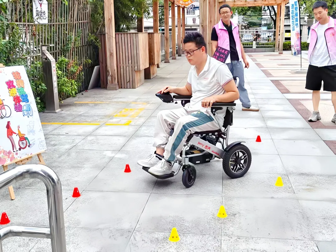为提高老人及其家属的参与度和接受度,活动特别设置了互动游戏区。“轮椅驾校”通过模拟真实生活场景,让老人在专业人员指导下学习电动轮椅的操控技巧,增强使用辅具的信心与安全感。完成体验的参与者还可领取实用小礼品,进一步提升了活动的趣味性和吸引力。现场还提供眼镜清洁等便民服务,从细微处体现对老人的关怀与温暖。