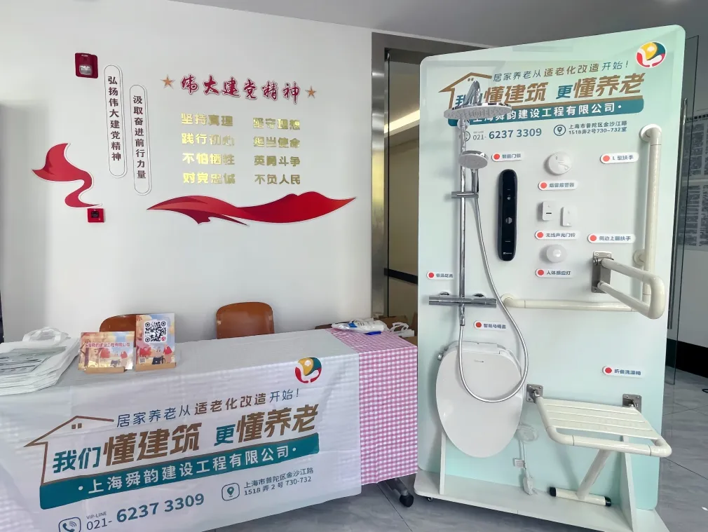 针对居家养老的安全需求,活动现场搭建了适老化改造实景展示区,集中呈现智能门锁、L型扶手、人体感应灯、折叠洗澡椅、烟雾报警器等产品在室内高频活动区域的实际应用效果。工作人员耐心为老人解读适老化改造补贴政策,帮助更多家庭减轻经济负担。