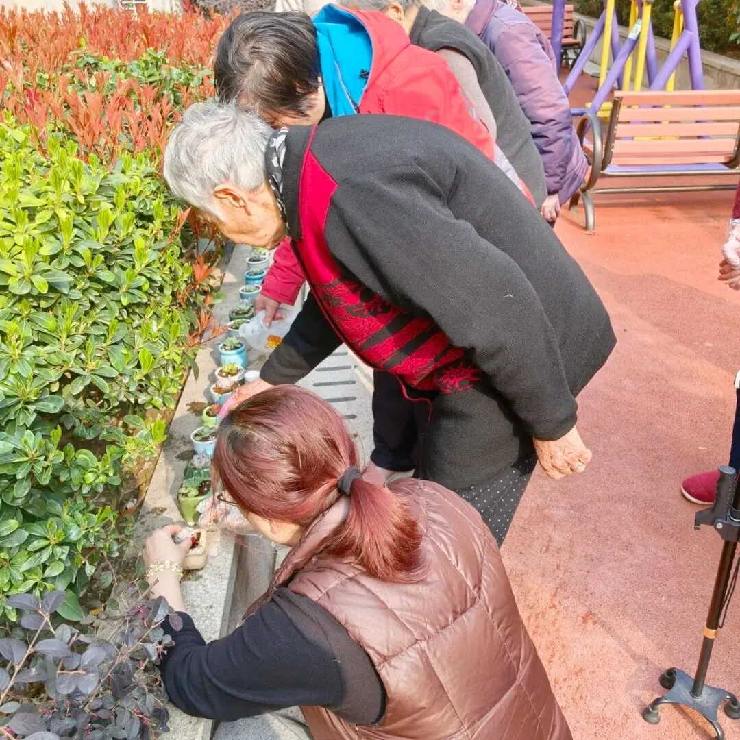 颐长敬老院精心组织了一场“指尖绿意,萌趣多肉”盆栽DIY活动,让老人们在方寸之间种下春日生机,收获指尖幸福。