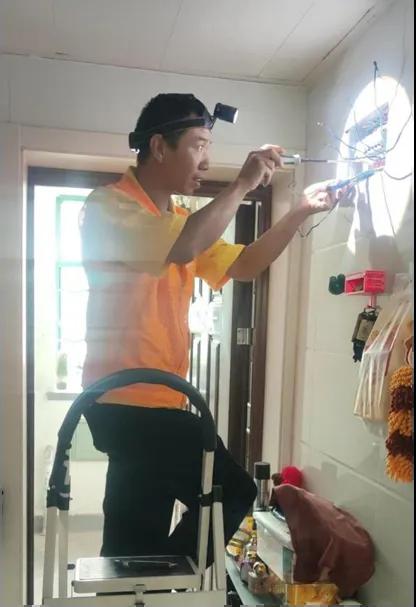 (9月23日,维修师傅正在乔先生家进行电路故障维修,受访者供图)