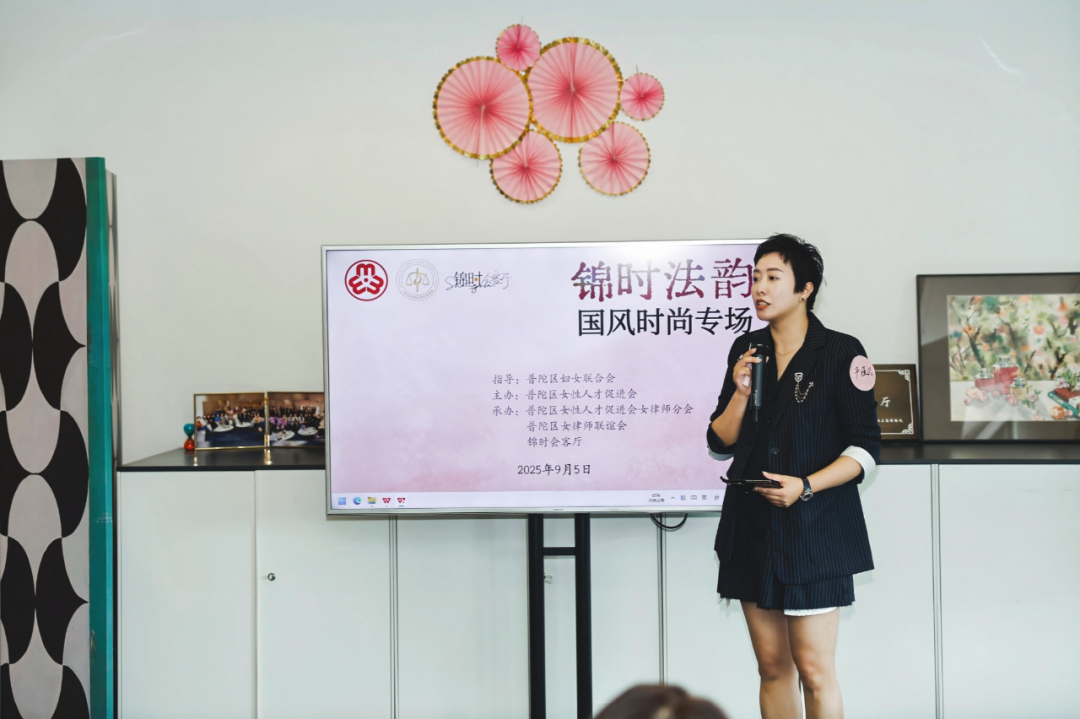 2025年9月5日下午,在普陀区妇女联合会指导下,由区女性人才促进会主办,女律师分会、区女律师联谊会、锦时会客厅承办的“锦时法韵·国风时尚专场活动”在菁英会客厅—锦时会客厅温馨启幕。