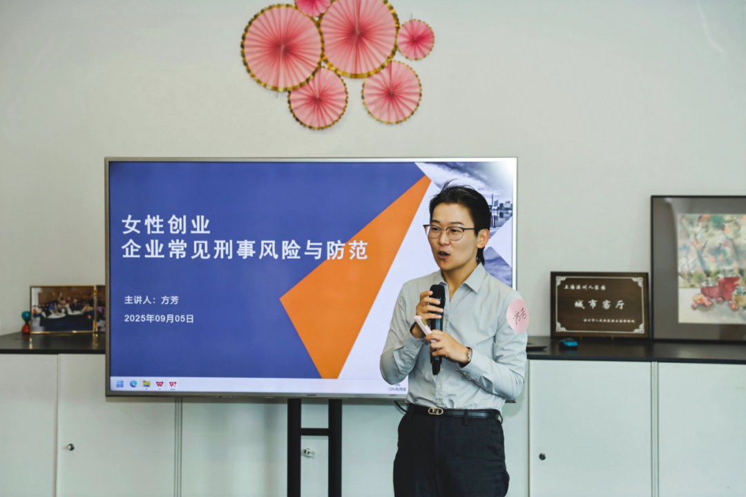 活动伊始,区女律师联谊会理事、上海靖霖律师事务所合伙人方芳律师为大家带来了以“女性创业企业常见刑事风险与防范”为主题的精彩分享。