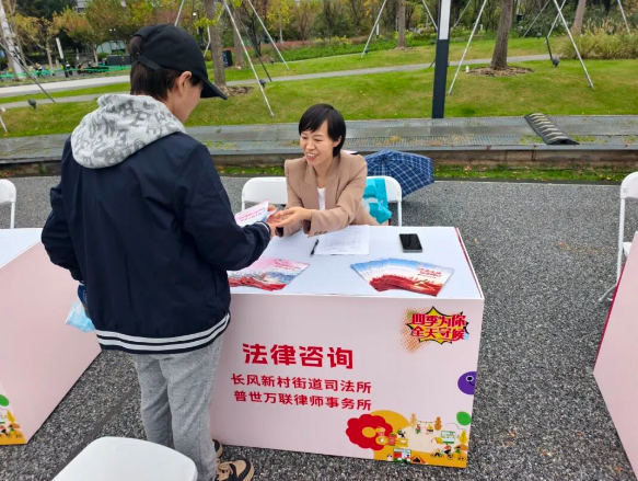 为进一步优化辖区法治化营商环境,增强新就业群体法律意识,近日,长风新村街道司法所在“四季为你·全天守候”——长风爱“新”秋日“伴”享生活的主题活动现场开展普法宣传活动。