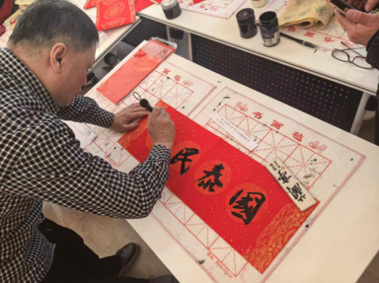 一幅幅寓意吉祥、饱含法治理念的春联在笔尖流淌而出,红色的春联纸随风轻扬,法治元素与新春祝福巧妙融合,让“学法、懂法、守法、用法”的理念以生动鲜活的形式走进居民生活。
