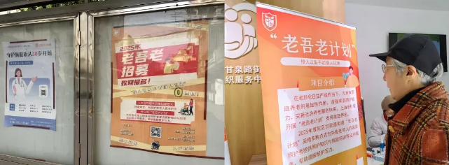 “老吾老计划” 全面覆盖甘泉路街道,只要您家有轻度失能老人,或者有潜在被照护需求的,都能参与进来!为了让居民深入了解项目的内容与意义,项目团队开展了全方位、多层次的宣传活动,为居民深入解读项目实施的具体细节,让“老吾老计划”走进每一个家庭。