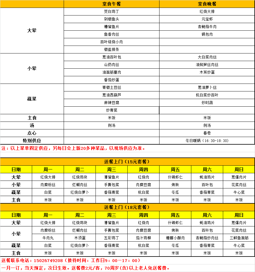 注:以上所列菜单如遇特殊情况可能临时调换,望请谅解。